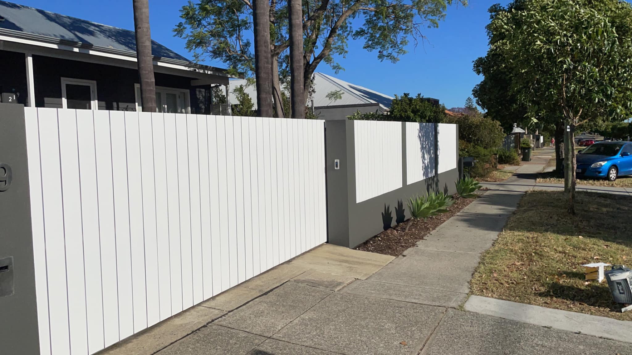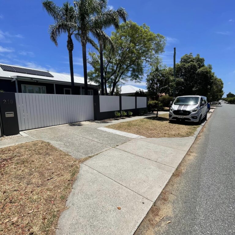 In this project, we worked on revitalising the fence and gate surrounding a front yard in Doubleview. The homeowner commissioned us to refresh both the rendered base and pillars, as well as the timber fence posts that make up the top half of the structure.