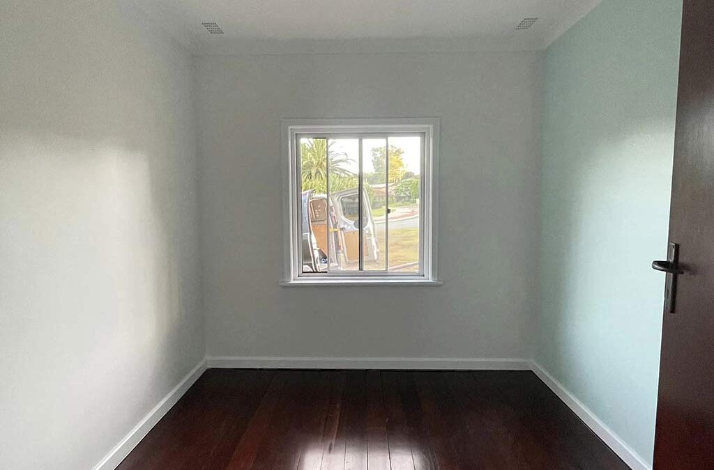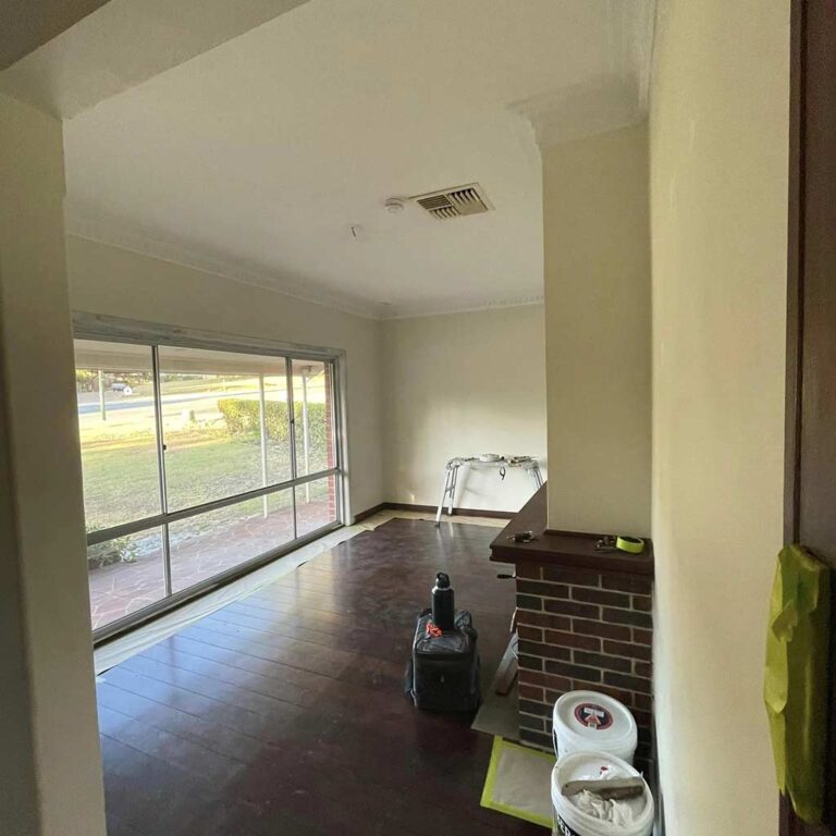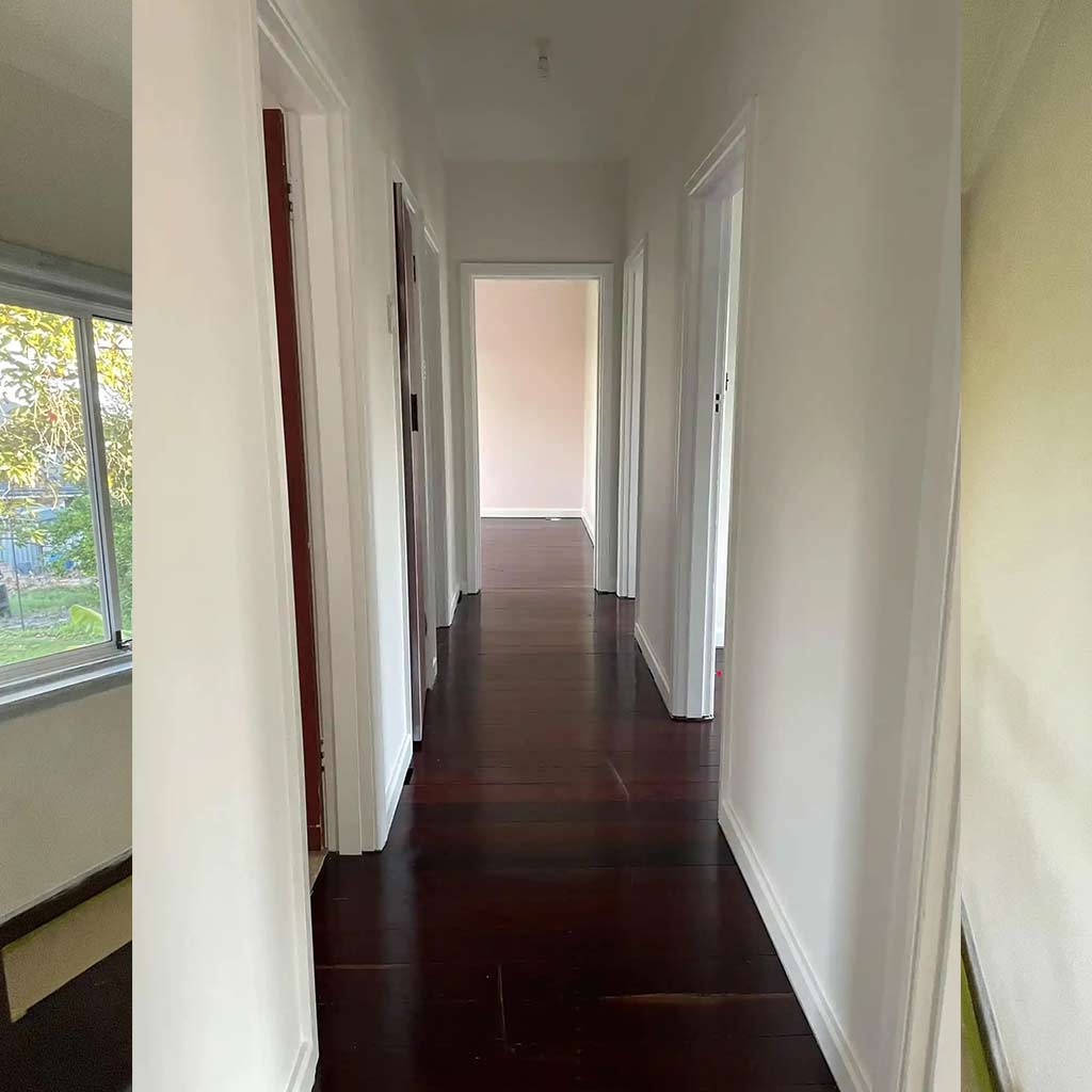 With the priming complete, we used Dulux Lexicon Quarter for a fresh, bright look across the entire space. This colour was applied to the frames, skirting, walls, ceilings, and doors, creating a seamless, rejuvenated aesthetic throughout the home.