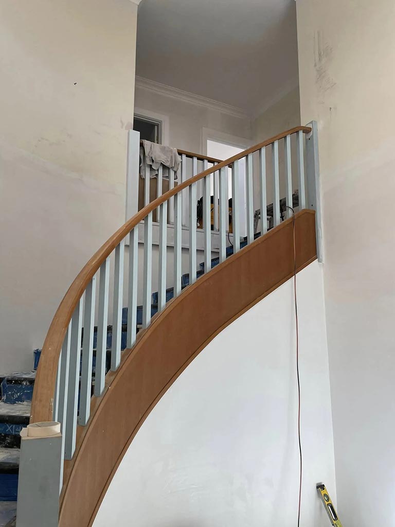 And so, starting with a clean slate, we thoroughly prepared every surface using our trusty Mirka Dustless Sander for a paint-ready base. We applied undercoats and topcoats to all necessary surfaces for uniformity and durability. To finish, we glossed all doors and frames, which not only brought the property back up in quality but also provided a superb finish that was appropriate for a grand prize home of this standard.