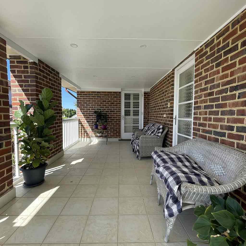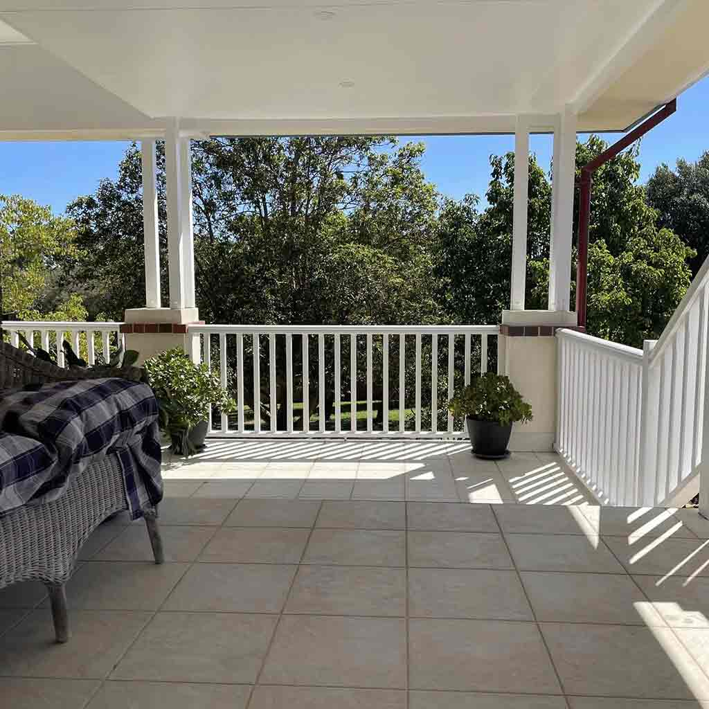 Our process started with surface preparation, meticulously removing any imperfections from the timber railing, barge boards, eaves, and window frames. Once the surfaces were prepped, we applied Dulux Weathershield, chosen for its durability and resilience against the elements. This high-quality paint was used on the railings, barge boards, eaves, and windows, ensuring a lasting finish that beautifully complemented the home’s mid-century style.
