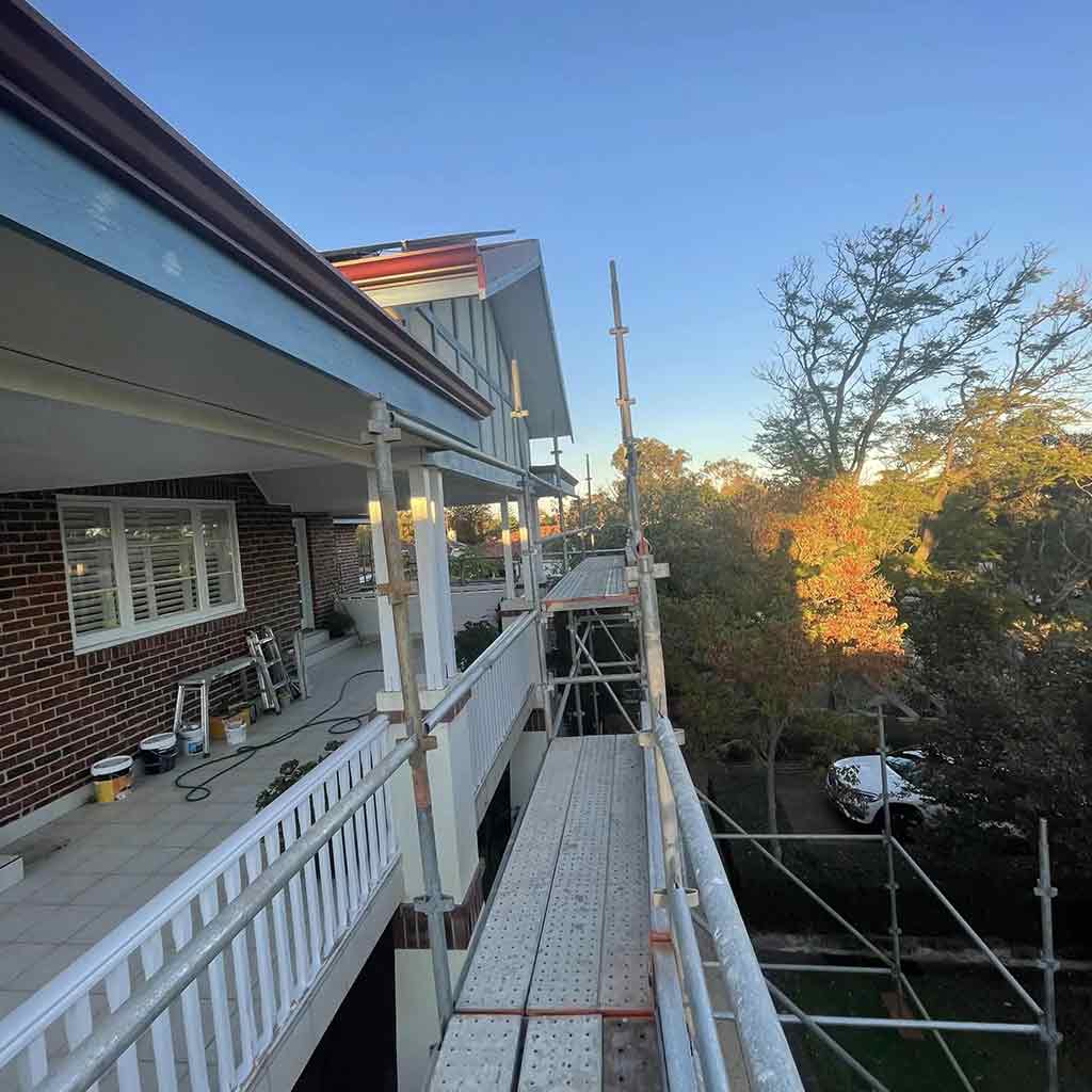 For this project, we were commissioned to complete an exterior repaint of a beautiful double-story home in Menora. To ensure we could reach every detail with precision, on-site scaffolding was set up, allowing us to carry out the work safely and efficiently.